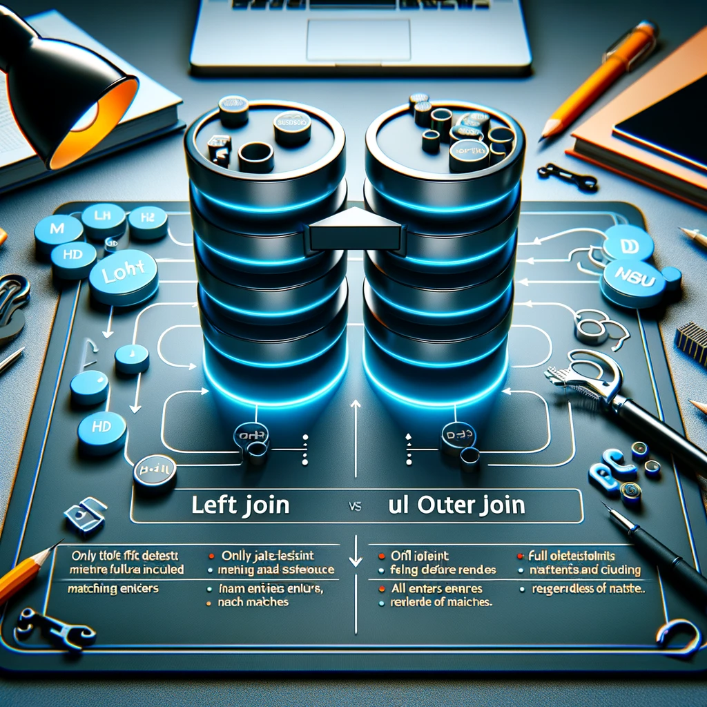 LEFT JOIN과 FULL OUTER JOIN은 두 테이블을 결합할 때 사용하는 SQL 조인 유형입니다. 각각의 동작 방식과 차이점을 예시를 통해 설명하겠습니다. 예를 들어, 두 테이블 Employees와 Departments가 있다고 가정합시다. Employees 테이블: EmployeeID | EmployeeName | DepartmentID -----------|--------------|------------- 1 | John | 1 2 | Jane | 2 3 | Bob | 3 Departments 테이블: DepartmentID | DepartmentName -------------|--------------- 1 | HR 2 | IT 4 | Marketing 1. LEFT JOIN LEFT ..