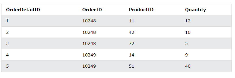 다음 SQL 문은 "OrderDetails" 테이블에서 "Quantity" 필드의 합계를 찾습니다.