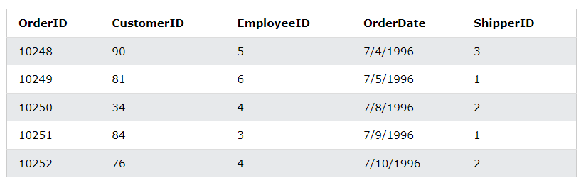 다음 SQL 문은 OrderDate가 '01-July-1996'과 '31-July-1996' 사이인 모든 주문을 선택합니다.