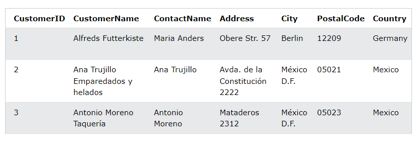 다음은 "고객" 테이블에서 선택한 항목입니다.